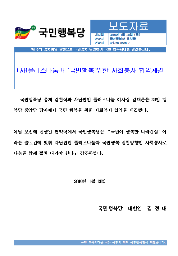 2016.01.20. (사)플러스나눔과 ‘국민행복’위한 사회봉사 협약체결