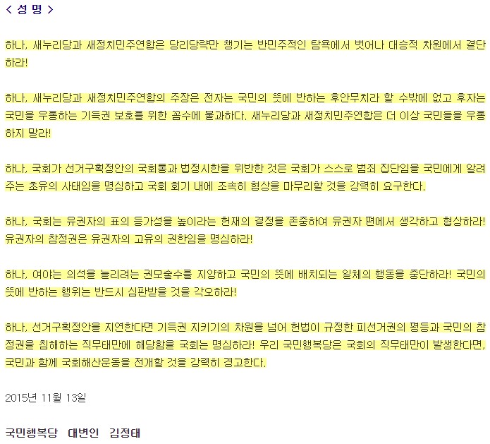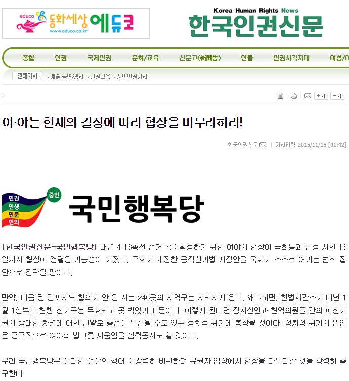2015.11.13. [뉴스] [한국인권신문] 국회는 19대 국회를 일하는 국회로 마무리 하라!