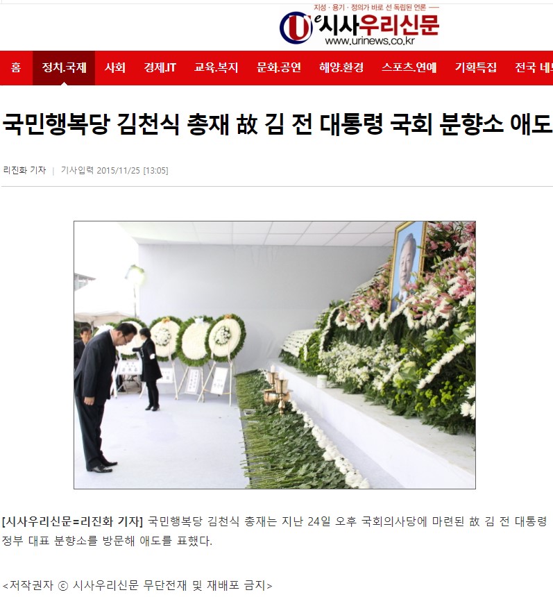 2015.11.25. [뉴스] [시사우리신문] 국민행복당 김천식 총재 故 김 전 대통령 국회 분향소 애도