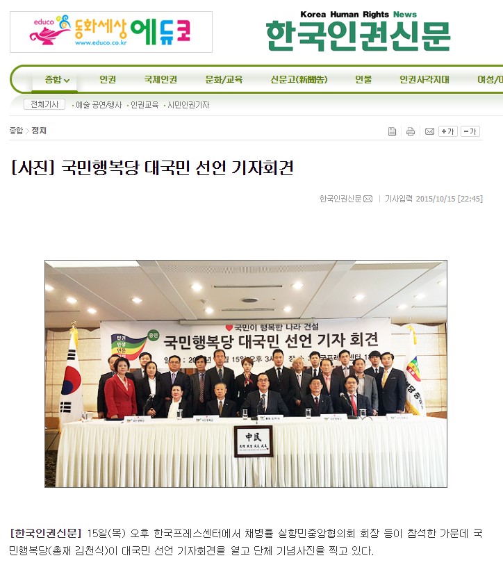 2015.10.15. [뉴스] [한국인권신문] 국민행복당 대국민 선언 기자회견