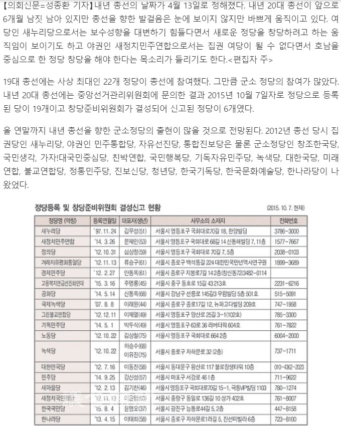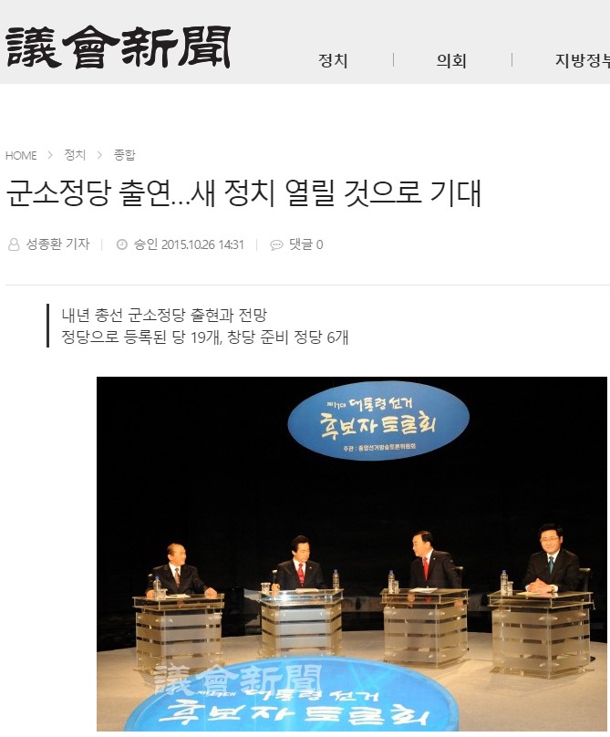 2015.10.26. [뉴스] [의회신문] 군소정당 출현...새 정치 열릴 것으로 기대