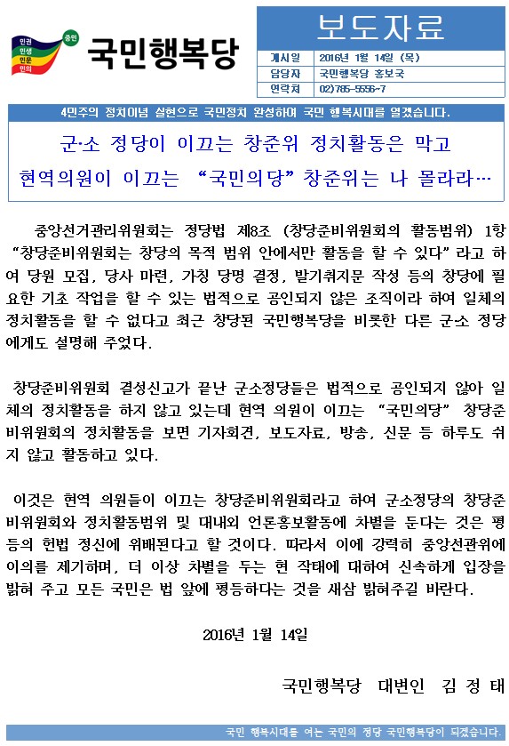 _국민행복당___군소정당_창준위_정치활동_차별__2016._1._14__보도자료[1].hwp