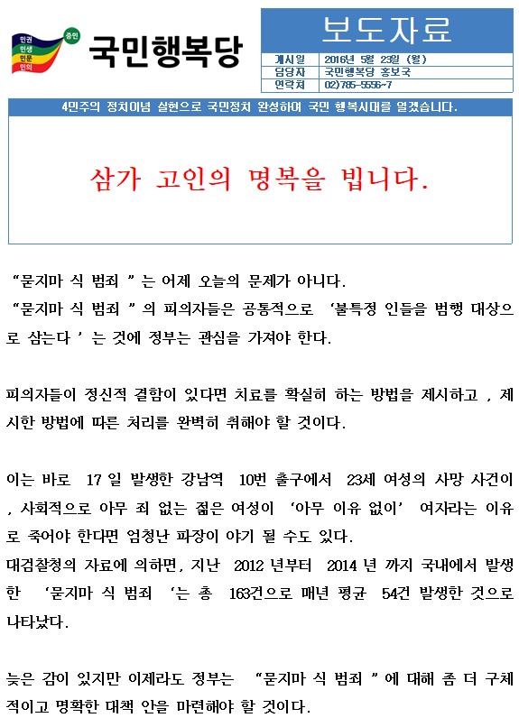 2016.05.23. [성명서]묻지마 범죄 관련 성명