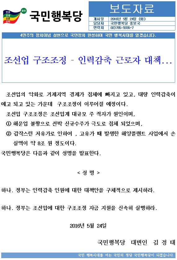 2016.05.24. [성명서]조선업 구조조정 관련 성명.hwp