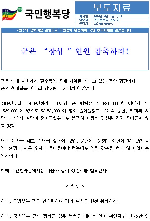 2016.06.01. [성명서]군 장성 인원 감축 관련 성명