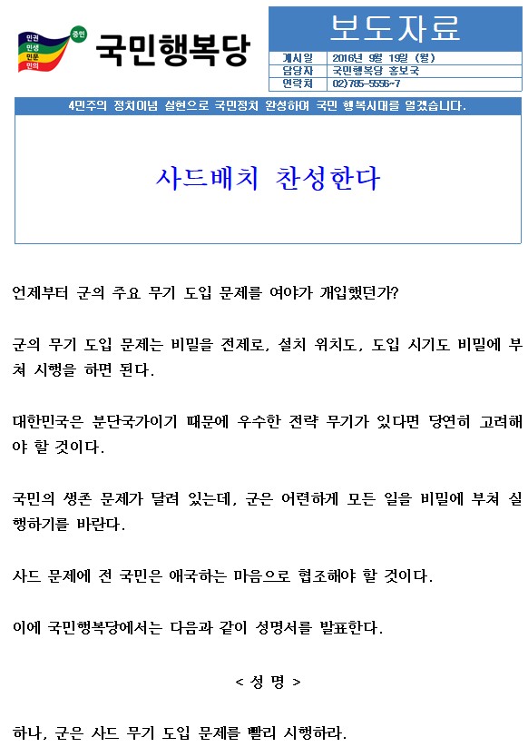 2016.09.19. [성명서]사드배치 찬성한다