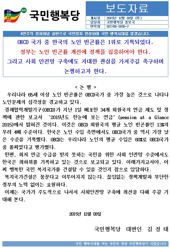 국민행복당____노인빈곤률_논평__2015.12._03__보도자료.hwp