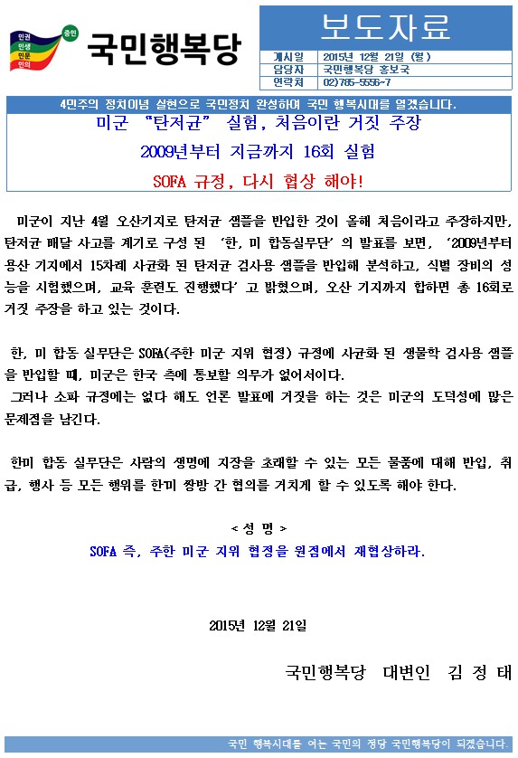 국민행복당__미군_탄저균_성명서__2015.12._21__보도자료[1].hwp