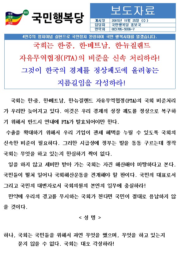 국민행복당____FTA_비준_신속처리_성명서__2015.11._25__보도자료.hwp
